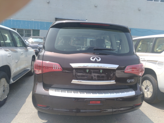 17款中东版英菲尼迪配置: QX80、颜色白、黑、酒红、5.6L、功率293、马力393、V8、7挡手自一体、全时四驱、8气囊、胎压监测 、车身稳定系统、环车影像、定速巡航、陡坡缓降、中央差速锁、电动天窗、铝合金轮毂、电尾门、行李架、一键启动、无钥匙进入、多功能真皮方向盘、腰部支撑、后排娱乐、雾灯、氙灯HBMC液压车身平衡控制系统、BOSE音响13个扬声器,自动开关双氙气大灯,带弯道辅助照明系统,集成式日间照明,远光灯辅助,主驾10向调节,副驾8向调节,,停车辅助,遥控启动 ,MOD第三代环影,座椅记忆,第三排电动,22轮。当天手续发票齐全 。贵宾热线;18649193633 高经理