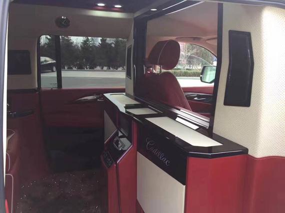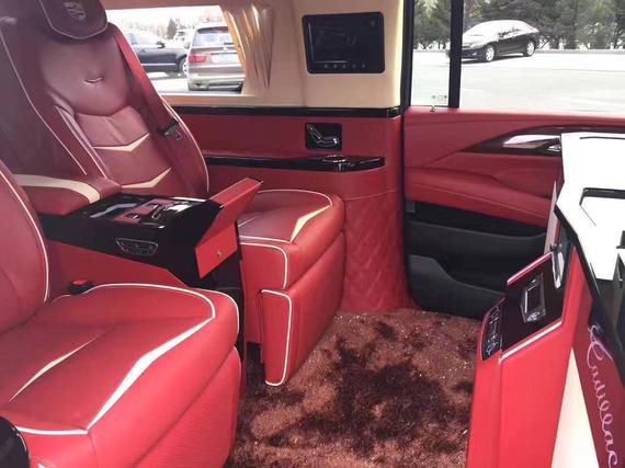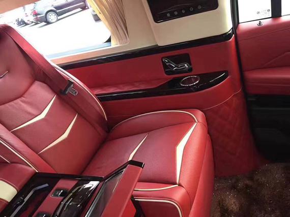 17款凯迪拉克总统一号内部为4 2座设计,前排为电动折叠座椅,座椅收起跟中间多功能实木吧台融为一体,形成更大吧台。后排为2个独立的电动按摩座椅带 通风、加热 按摩 腿托 靠背放平等。乘客舱所有的电器全部集成在后排座椅中间小吧台的屏幕上,操作方便简单。全车都采用酒红色真皮包裹,档次和豪华程度无可比拟。安全方面,防弹后尾门为您保驾护航。