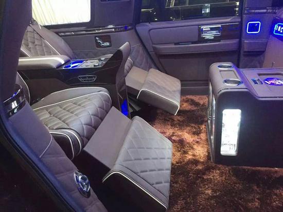 配置:2017款林肯领袖一号,加长版,4+2式座椅(后舱超级VIP航空座椅12向电动调节带按摩及通风、加热、加2张电动隐藏式秘书座,带加热)3.5TT涡轮增压 378匹马力,智能卡无钥匙启动,8寸大屏导航倒车影像,电动踏板,VIP包围,LED大灯,氙灯,车内氛围灯,桃木多功能真皮方向盘 ,电动油门刹车踏板调节,方向盘电动调节,盲点辅助,前舱高级THXI音响系统,20轮 电动后尾门 ,电动踏板,后藏VIP总统级商务座椅,12向电动调节包含头枕自动升降,座椅通风,座椅加热,后藏独立空调系统,多点自动按摩,全车德国Napa真皮,高级美国进口游艇PVC高度耐磨防滑地板,电动隐藏式进口胶囊式咖啡机,42寸超大屏高清电视(自动升降),后藏法国劲浪5.1声道环绕立体声发烧音响,支持高清蓝光播放,支持高速USB高清电影移动硬盘播放,支持4T高速硬盘蓝光高清电影播放,支持4G高速上网,支持手机智能互联,独立大容量USB充电接口以及12V应急电源插座及110V笔记本电脑供电插座,后藏2个独立储物空间,中间过桥试中控台,以及中控电动隐藏迷你咖啡吧,中间吧台内7寸触摸智能全车电器智能控制屏。