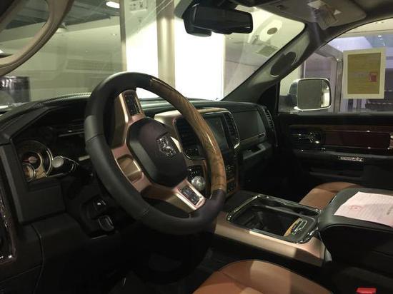 2017款道奇公羊长角号5.7L做工则完全摆脱了美式的粗糙感,边缘、接缝都处理的很精细。对于熟知猛禽等皮卡车型的朋友们来说,道奇公羊的品牌还是具有一定的神秘感和号召力的。道奇公羊长角号采用了四幅式多功能真皮方向盘,功能键可以控制音频系统。道奇公羊长角号整体造型以方型为主,饱满感在车辆每一个环节都被表现的淋漓尽致。