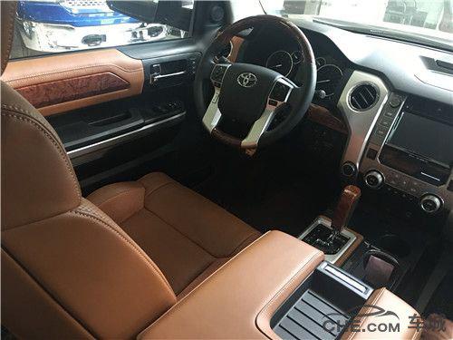 丰田坦途1794版的前保险杠下方还有发动机底部护板,从而提高它越野性的通过能力。丰田坦途1794版稳重大气之中透露着温馨,整体布局干净利落。