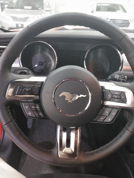 内饰方面:内部铝质饰件更加让人感受到野马的技术之精良。三幅方向盘直径很大,握在手里就会有种掌控一切的感觉。宽大的真皮座椅和门板整片的塑料都是绝对的豪车范儿。内饰简单中却透露着一种原始的粗犷和令人上瘾的刺激感。时尚的功能性配置及其精确的制作工艺为劲车设计设定了新的标准。中控台搭配银色装饰面板提供了不错的层次感。