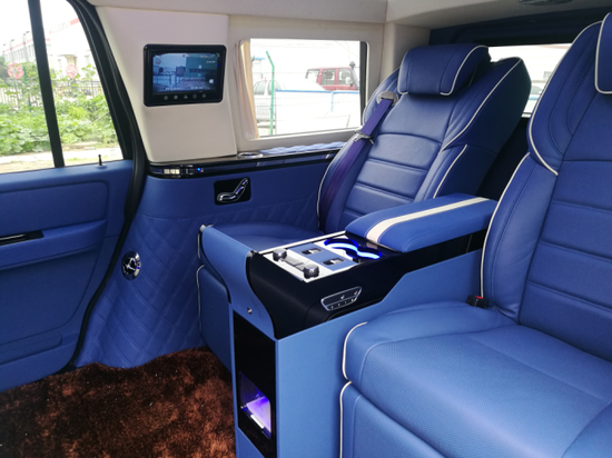 全新林肯领袖一号高清晰液晶电视,侧面2个7寸液晶显示屏,桃木内饰/酒吧/冰桶,一系列奢华配置不禁让人眼花缭乱。宽大的真皮沙发、迷你酒吧、多媒体影音系统、实木地板以及多色光纤灯饰,典型的美国式豪华。领袖一号似乎更是一个豪华办公室。