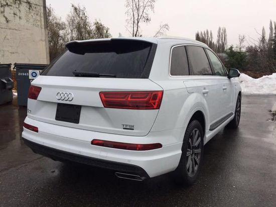 购车咨询热线:15822889667李经理 同微信 (可售全国 随时看车 当日提车 详情电询)2017款奥迪Q7大灯造型也采用奥迪最新的设计,车身整体看起来也更加扁平。足够大的车身尺寸,让驾乘和载物都毫无压力。奥迪Q7车身始终给人一种紧凑、刚毅的感觉,以卓越的公路驾驶表现、出众的越野能力,次次谱写顶级豪华SUV的新标准。2017款奥迪Q7造型是典型奥迪风格,材质高档、做工精细,真皮座椅和方向盘、深棕色木纹装饰的点缀都体现出了低调的豪华感