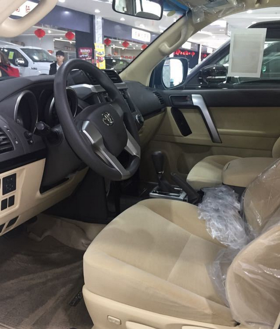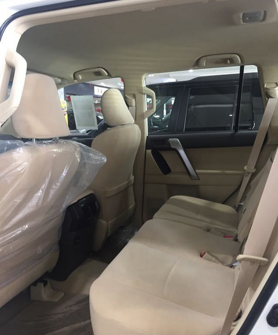 备注17款中东版霸道2700丐版电议现车充足配置:白色 2700 底挂,2气,R17铁轮,,7座,手动空调,冰箱,6喇叭,遥控钥匙,地毯,ABS+VSC+TRC,卤素头灯,手动头灯调节,脚踏,拖勾,,胎压监测。24小时购车热线:赵经理 18231453925(同微信 销售全国 可贷款提车)