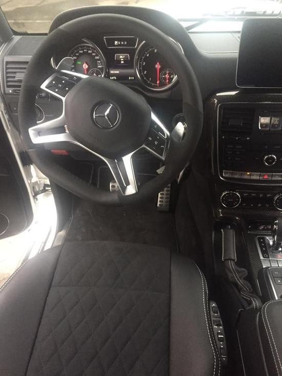 2017款奔驰G500美规版车内采用深色调与桃木装饰,黑色真皮运动座椅非常舒适,方向盘以高档真皮包裹装饰,触感极其细腻。配有桃木装饰的操控台,稳重大气,同时提高了整体的质感。各种功能按钮应有尽有,丝毫不次于豪华轿车的功能;后排空间非常宽敞,且后排的座椅可以折叠,以得到更宽敞的储物空间,奔驰G500可以自行调教的空气悬挂并且拥有舒适和运动模式,奔驰的Command系统全时四轮驱动系统、四轮驱动的电子牵引系统(4ETS)、同步啮合分动箱、三个全锁止式差速锁等各个系统和功能相互配合,共同实现强大全面的越野性能,电动座椅调节,前保险杠,完全突出G550这个硬汉形象。动力方面,进口奔驰G500机械增压器的装备使得它在近1800rpm时就能爆发出80%的最大扭矩,再加上梯形大梁非独立悬挂和前中后桥三道差速锁(均能100%锁死),使得G500具有强横的通过能力。不过这些并不意味着进口奔驰G500的公路性能的丧失,推动近三吨重车身的时候,依然有0-100km/h加速10.2秒的好成绩。