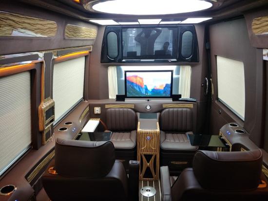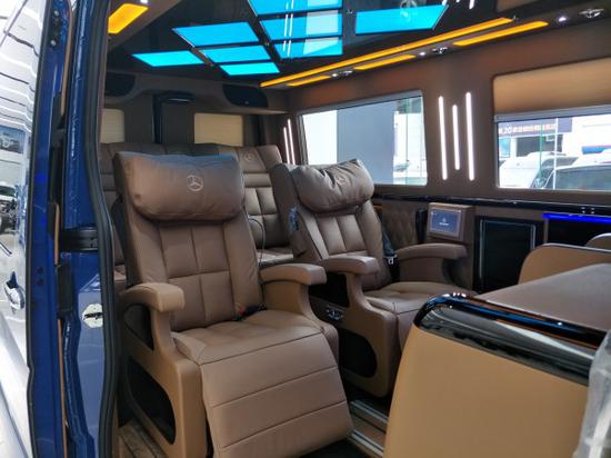 2017款奔驰斯宾特房车最吸引认得地方就在于其内饰,加高顶的设计让车舱内的空间更加宽敞,空间越大就会给人带来更棒的乘坐体验。车内舱高度在1.88米左右,也就是说只要是身高没有达到这一高度的人都可以在车中直立。此外原装进口的奔驰斯宾特房车的座椅特别的舒适,舒适度可以说是完爆丰田埃尔法 (配置|询价)座椅,座椅可以24向自动调节,可以加热可以按摩。电视机热水器,车载冰箱,钢琴烤漆的小桌板等等应有尽有。