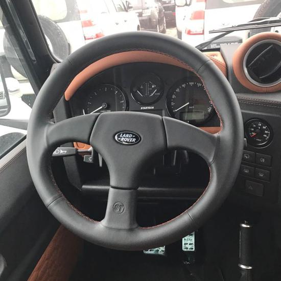 内饰方面:17款路虎卫士110没有太多流行的配置以及豪华的用料,但这样才让路虎卫士更加纯粹,让喜欢路虎卫士的人爱不释手,能操作的几乎所有电子设备按钮都集中在中控台上了,而舒适便利性配置则为空调、电动车窗、手动空调和CD音响和前排座椅电加热功能。内饰做工水平还是比较细致的,毕竟它还是路虎。前排座椅的设计经过改善可以提供更好的背部支撑,多功能收纳可为驾乘者带来方便,共有两款收纳设计可供选择——实用主义的开放式托盘设计,令用户可方便取放物品;大型有盖设计,可提供14升的超大储藏空间。而全LED仪表照明等细节设计则有助于确保高水平的稳。路虎卫士黑色的真皮赛车座椅设计别具特色,皮质手感非常顺滑,方方正正的安装在驾驶室里。舒适性方面,车内提供了一套更强大的加热和通风系统。贵宾热线;18649193633 高亮