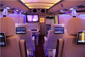 丰田考斯特10座改装在外观的设计主要体现在细节的装饰上,为车身添加彩色中线,增加车身的层次以及灵动感,不会让中巴车型的考斯特10座显得过于笨拙。在车轮的装饰上,丰田考斯特10座改装商务车增加轮毂罩,既能够保障行车安全又在一定程度上增加了车身的美观。车头前的镀铬设置以及在车门处增加的自动阶梯,着一些的设计都在细微之处体现了丰田考斯特10座改装商务车的独特之处。