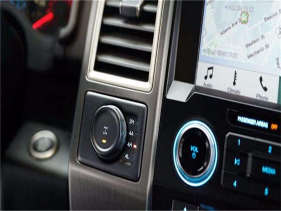 细节方面:2017款福特猛禽F150增加了一个全新的4.2英寸多功能液晶屏MyFord驾驶员链接技术。一个8英寸的中控台触摸屏和安装在方向盘上的五向控制键。液晶屏驾驶员的程序配置包括:行车电脑、燃油经济性和拖车系统、越野应用菜单等。