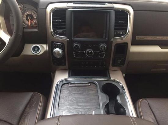 17款道奇公羊规整的中控台设计看上去比较死板,但丰富的配置会让你不由得为其称赞。中控台的设计简洁硬派,符合公羊的气质。2017款道奇公羊车型全部座椅均采用真皮包裹,前排还配备了十分实用的运动座椅。2017款道奇公羊在空调系统上,双区自动空调自然是必不可少的,后排也有独立的出风口。
