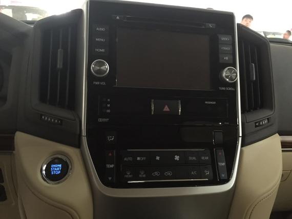细节方面:丰田兰德酷路泽4000如果再将第二排座椅折起,完全能够满足特殊装备的承载。上方为多功能显示屏,中间为音响控制系统,左右两侧为空调出风口和空调温度控制按键,是陆地巡航舰贴近生活人性舒适化的设计。