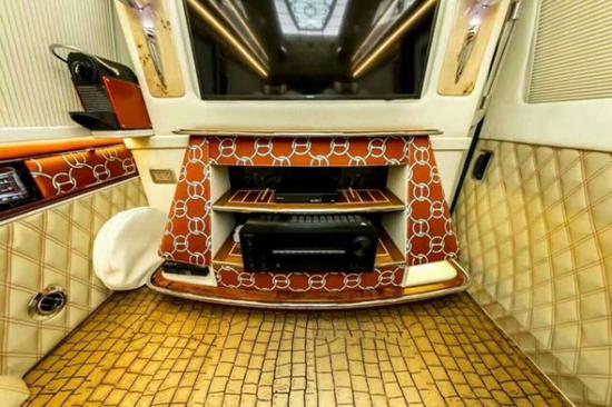 更为高端大气上档次的吧台,用奢华已经无法形容了。福特E350爱马仕不仅仅是车厢,更是一座移动的宫殿。这里不仅仅拥有奢华,更是体现了这座宫殿主人的品位。既然是