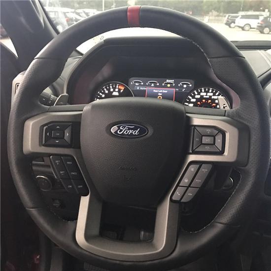 细节方面:猛禽F150如其名,高大威猛,进口福特F-150 (配置|询价)皮卡车兼实用与动力于一体,不光可以承载您的搬运用途,拖拽、飚速都一样能够满足你。 福特猛禽方方正正的前大灯与前保险杠造就了完美的车头造型与比例。尾部的设计乏善可陈,并无太强视觉冲击力。RAPTOR的字标还是很有感觉的。福特猛禽增加了一个全新的4.2英寸多功能液晶屏MyFord驾驶员链接技术。一个8英寸的中控台触摸屏和安装在方向盘上的五向控制键。液晶屏驾驶员的程序配置包括:行车电脑、燃油经济性和拖车系统、越野应用菜单等。