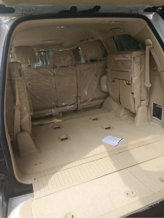 2017款丰田兰德酷路泽4600内饰依旧可以乘坐8名乘客,并且为了给大家提供一个舒适的环境,采用了四温区的自动空调,中控台上没有使用老款车型所用的桃木装饰, 而是换成了具有磨沙手感的金属板件。