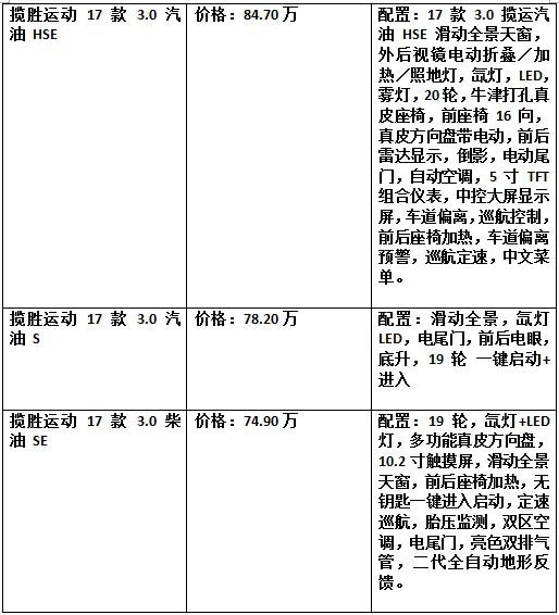 近日店内17款路虎揽胜 (配置|询价)运动欧规版现车到店,最新报价优惠,多款配置颜色可选。17款路虎揽胜运动 (配置|询价)版外观有所改动,更具运动气息。从前脸设计来看,路虎揽胜运动版采用双辐式进气格栅,梯形的保险杠和下护板显示了其一丝野性。侧面来看,腰线倾斜向上,和车顶营造了一种运动的效果。店内车辆关单、商检齐全 ,当日提车,全国购车皆可办理分期付款。更多优惠促销请致电天津众驰恒信汽车国际贸易有限公司。