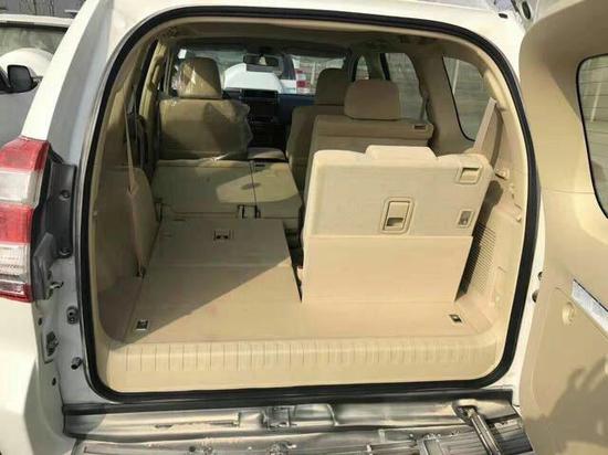 17款丰田霸道4000配置:6速自动挡,7座,中央置物盒,冰箱,真皮方向盘,布艺座椅,三区自动空调,前排电动座椅,6扬声器,多功能方向盘,9寸导航屏,后挂,硬质备胎罩,尾翼,无钥匙进入,前雾灯,脚踏,镀铬后门装饰,银色行李架,天窗,车辆稳定控制,后雾灯,胎压监测, 主动牵引系统,中央差速锁,坡道起步辅助,下坡辅助,儿童专用座椅,前后电眼,定速巡航,9气,后倒影,265/65 R18