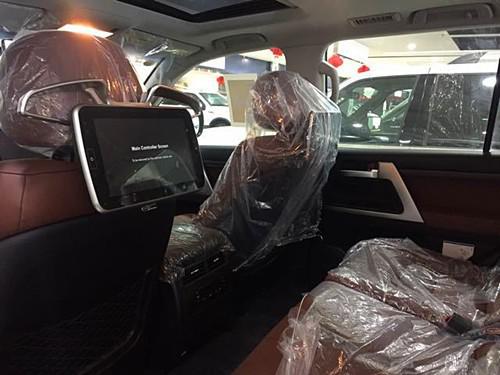 17款酷路泽5700比16款酷路泽5700外观更加霸气,2017款底挂顶配酷路泽5700配置:天窗、12气囊、八座、真皮座椅带通风、底盘升降、360度环影、雷达测距、蠕行系统、并道辅助、车道保持、八速、双差速、JBL音响、20轮、氙气大灯、全车镀铬、智能卡、前小杠、小尾翼、前后电眼、后视镜折叠、冰箱、后排娱乐、行李架、脚踏、胎压检测 、木地版、晾衣架、新款行李架、电尾门,大包围,摇起。