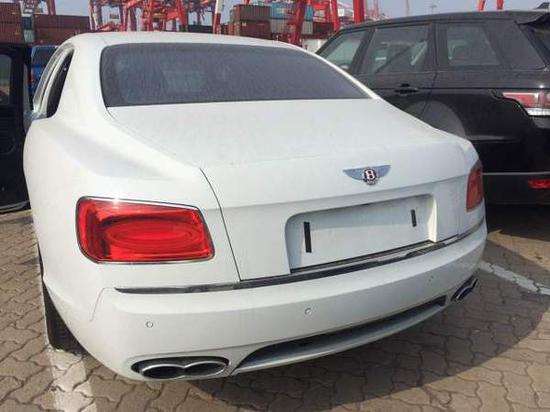 2017款宾利飞驰 (配置|询价)体形巨大、略带点复古,又结合了现代的动感元素,用心去端详,你会发现它真的很美。拿熟悉的加长版奔驰S级 (配置|询价)轿车做了对比之后发现,飞驰的长宽高都大于S级,但轴距却整整短了100mm。近日,天津港现车,颜色可选