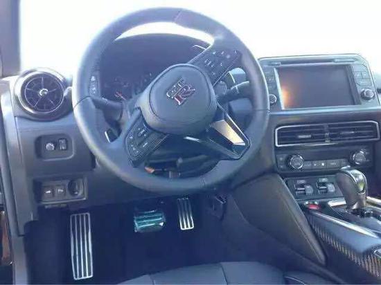 2017款加版日产GTR跑车内部设计仍然体现出一流的实用性和豪华感:采用和真皮方向盘同样皮质包裹的档杆,与日常车型一样,拥有PNRD四个基本驾驶档位。