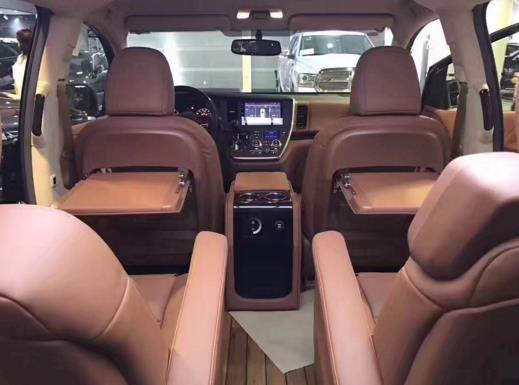 | 17款塞纳XLE版 | 黑色 | 7座,18轮, 7寸触摸屏,定速巡航,前雾灯,后电眼,倒影,第三排手动座椅,备胎,音响6声道mp3,可滑动天窗,原厂真皮座椅,第二排座椅带腿托,前排座椅加热,智能卡,一键启动,主驾驶8向座椅调节,副驾驶4向座椅调节,多功能方向盘,镀铬门把手,行李架,电动门,电尾门,遮阳帘,隐私玻璃。 | 48万 | 优惠 | 现车 |