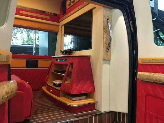 更为高端大气上档次的吧台,用奢华已经无法形容了。福特E350爱马仕不仅仅是车厢,更是一座移动的宫殿。这里不仅仅拥有奢华,更是体现了这座宫殿主人的品位。既然是