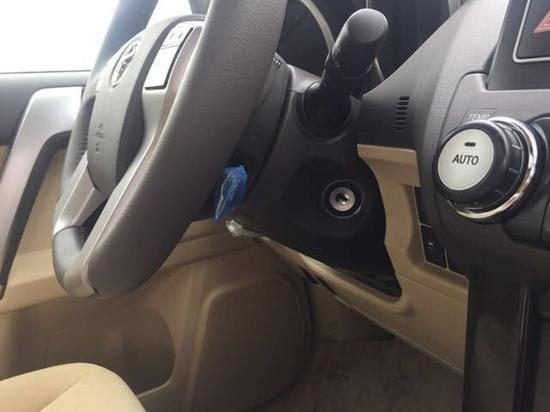 17款霸道2700vx天窗版 :配置:后挂,天窗,265/60R18 ,倾斜折叠方向盘,真皮方向盘,电动方向盘,尾翼,电动车窗,LED日间行车灯,彩色折叠后视镜,蓝牙车载电话,定速巡航,车辆稳定性控制,牵引力控制,LED大灯,无线车门锁,后4电眼,后雾灯,双区自动空调,布艺座椅,引擎防盗,镀铬外饰,9气,冰箱,前排电座,大灯清洗,炫彩仪表盘,多功能方向盘,6扬声器,自动大灯校准,拖勾。