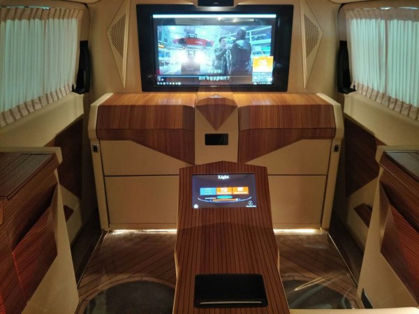 相比较与传统的家用汽车,奔驰斯宾特始终坚持着舒适性至上的原则。车内的这两台航空座椅集成了主要休闲功能,采用了纯手工Nappa真皮包裹,全自动化控制。包括前后移动和开启加热、通风、记忆功能,都由扶手内侧的控制面板执行。