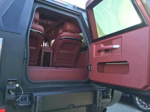 内饰方面:2017款乔治巴顿装甲越野内饰中所显示出的细腻感与外观形成了强烈反差,内饰经过高档双色真皮重新包裹,搭配木纹饰板点缀,使得原本就宽敞霸气的内饰更显豪华。舒适独立的多功能电动真皮座椅,让您置身其中会忘记自己身处外观如战车般的乘坐舱内。