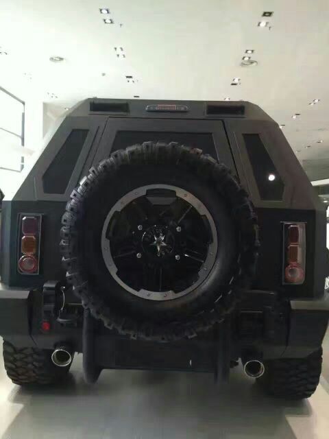 外观方面:2017款乔治巴顿超级越野车身侧面延续了粗犷的设计风格,外跑的轮眉、见棱见角的车门以及其本身超长的轴距尺寸。侧挂式的备胎造型很新颖,不过势必会对后方外侧的视野有一定的影响。17寸的轮毂本身无论造型还是尺寸并不小气,但与这身材比起来就显得不是很没协调。俨然一副稳如泰山、咄咄逼人的气势。