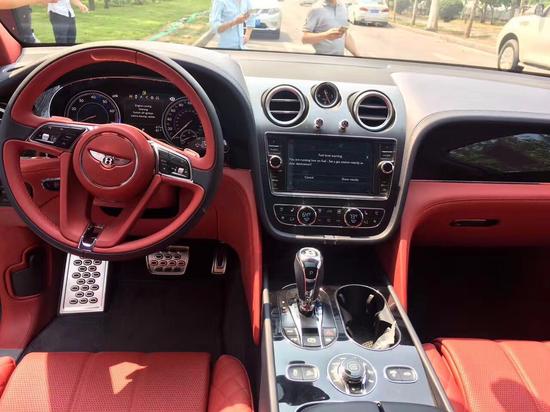 2017款欧规宾利添越内部设计沿袭了传统的豪华风格,全新的三辐式方向盘、大尺寸液晶显示屏和全新的电子换挡杆也为新车增提了一丝科技感。