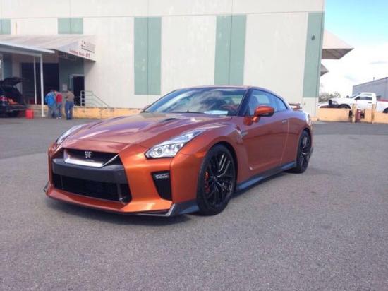 17款GTR前脸上方进气格栅进行了升级,由原先的梯形改为U型,下方的进气口有原先的梯形改为长方形,雾灯下方增加了进气口,并且采用了全新的前唇,新款侧面增加了侧裙,新款车型轮毂也进行了改革减少了幅数,尾部增加了全新的后包围,运动感倍增。