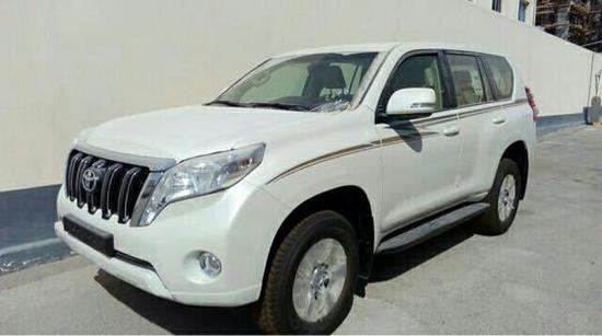 2017款中东版丰田霸道(普拉多 (配置|询价))2700 TXL卡塔尔版 配置参考:外挂 无窗 金属漆 17铝轮 两气囊 大屏 冰箱 彩条 多功能方向盘 黑脚踏 七座 巡航定速 电动折叠后视镜 卤素大灯 后挂备胎 倒影 胎压监测 电眼 三脚架 灭火器。参考价格:38万 可谈。