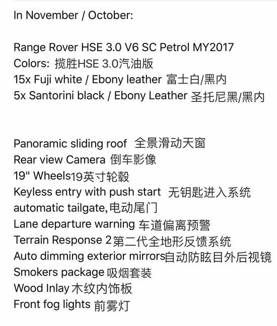 目前17款路虎揽胜 (配置|询价)行政现车在售,颜色主要以(黑色/白色/等等)为主。购车可优惠万元。全国可办理分期购车业务。17款路虎揽胜行政版全新造型延续着粗犷的大灯设计,保险杠和铝制装饰件的协调搭配与设计,格外闪耀魅力,令其英伦豪迈质感得以传承。对这款车感兴趣的朋友们不妨进一步关注一下。
