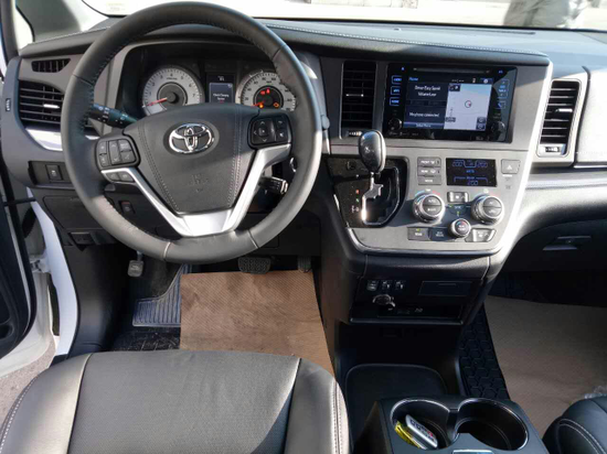 内饰方面:17款丰田塞纳的方向盘很精致而且握感厚实大小适中,并且带有电动调节功能。由于广泛的采用了吸音的材料,能提供最佳的乘座舒适性。中控台相比老款设计更加简洁时尚。最新款配置摒弃了沉稳风格,转而运用大量的常被装饰在跑车或SUV车内的碳纤维作为设计亮点,舒适度也跟着大幅度饱和。非常高端。