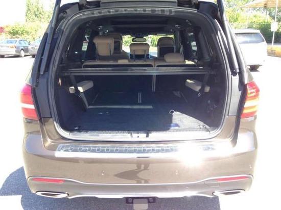2017款奔驰GLS550搭载4.7T V8双涡轮增 压发动机,最大输出功率为454马力,峰值扭矩为699N·m;GLS的后备厢空 间最小为680L,当把后两排座椅放平,最大可扩大到2300L。