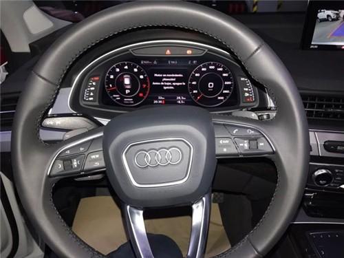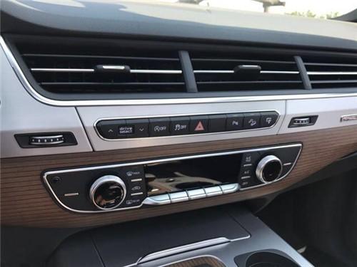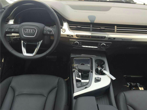 内饰方面:奥迪Q7的内部空间采用环抱式设计理念,即运用一条优雅的弧线设计将仪表盘收纳其中,使其犹如一道平缓的波浪。全新的档杆设计搭配杯架隔层,为您提供便利的同时,让换挡过程更加平稳顺畅。简洁的中控台配备有8.3英寸的可收纳液晶显示屏,并采用铝制和木质饰板相搭配,更加突显新车的豪华感与科技感。新车还配备有第二代MMI信息娱乐系统,并可实现触控和实体键双重操作,并且还进一步优化了操作逻辑。此外,精致的真皮仪表板和方向盘等设计,更彰显高雅品位。2017款奥迪Q7将运动性、功能性、高科技和豪华品质巧妙地融为一体。