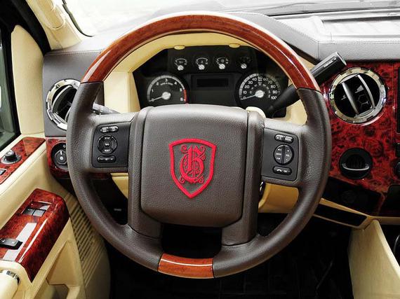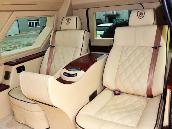 新款乔治`巴顿单由外观设想它的内饰风格,乔治巴顿的车内布局一定会被想象成战车那种简约硬朗的驾乘风格,但是当您拉开车门,有着一种优雅古典的格调,前、后舱之间设有隔屏,配以22寸超薄显示器,在最大程度上保证了后舱乘客的私密性的同时又可以在旅途中享受影音快乐。