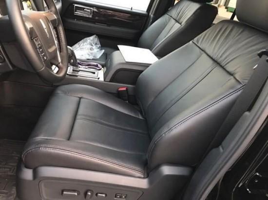 内饰方面:2017款林肯领航员后排的空间和配置令人眼花缭乱,高清晰液晶电视,侧面2个7寸液晶显示屏,桃木内饰/酒吧/冰桶,可升降分隔屏,中间电动私密升降隔屏等一系列奢华配置。增添了新式整车包围,这让车体看上去更显浑厚有张力,突出了车的硬朗感。17款林肯领航员皇家座椅按摩、加热、推托及电动调节,可升降分隔屏,前后对讲电话等等,后排的空间和配置让人震撼。具有智能感应功能的车头LED车灯带将在车主接近车辆时自动亮起。方向盘上的各种控制键,除了常规的电话、音响,还能调整空调的风量大小,这在其它汽车中是不具备的。还提供豪华真皮座椅、皮革包裹仪表盘以及Ziricote木饰件选装,演绎限量版车型般的奢华空间。