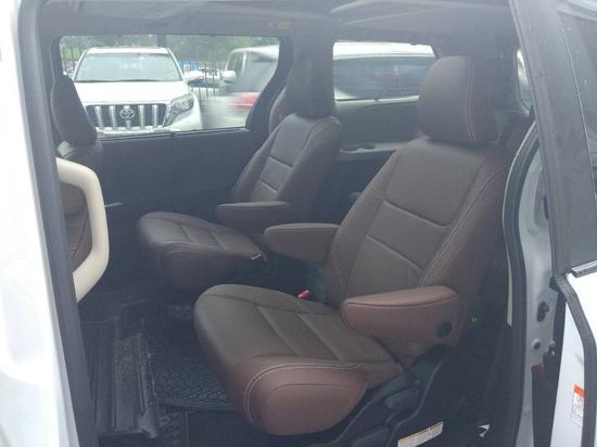 17款塞纳LTD顶配内饰二排座椅配备了舒适的航空座椅、无论是长短途行驶都会让您的旅途更加舒适愉悦。同时原车的全景双天窗使原本就宽敞内饰空间更加宽敞明亮。座椅目光所及之处均被大面积的真皮、实木和金属所装饰,新车驾驶舱依然采用非常具有运动气质的飞行驾驶座舱,座椅用料非常考究,车厢内部,可选择7座或8座设计,本店所有车型手续齐全(当天提车),可办理全国分期付款(最快三天下款),24小时贵宾服务热线:185-2630-5356 小张( 电话同微信)