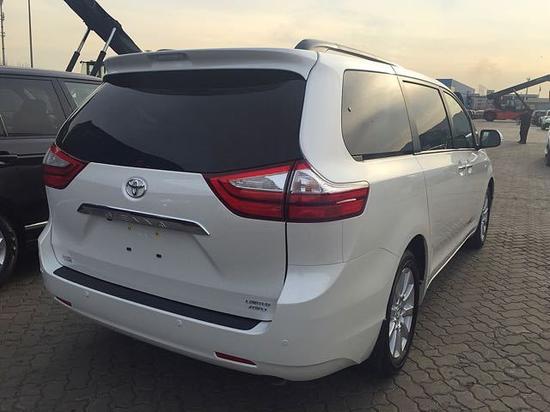 17款加版 丰田塞纳LTD顶配 白/棕 限量版最高配、金属漆、高级真皮座椅、吸顶DVD、7寸触摸屏、JBL高级音响、蓝光播放器、倒车影像、电眼、双天窗、氙灯、前排加热座椅、电动折叠后视镜、感应雨刷、并道辅助、一键启动、无钥匙进入