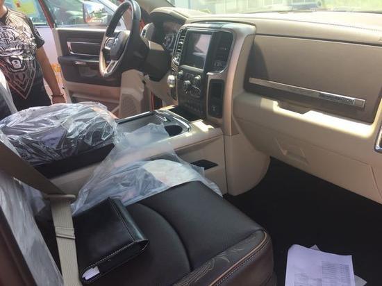 17款道奇公羊长角号真皮座椅各自独立,配有加热、按摩等舒适功能,每个座椅独立配一个操控手柄,各项功能由乘坐者自己控制。道奇公羊皮卡前杠是铁质前杠带拖钩,散发这金属气息,夸张的设计给人很强烈的视觉冲击,更激发了人们的驾驶欲望!