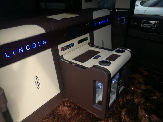 2017款林肯领袖一号内饰及其奢华,多功能方向盘,全部真皮包裹座椅,内饰采用桃木搭配设计,高贵典雅,加长车身除了增加内部空间外,还给人营造一种尊贵典雅的感官。