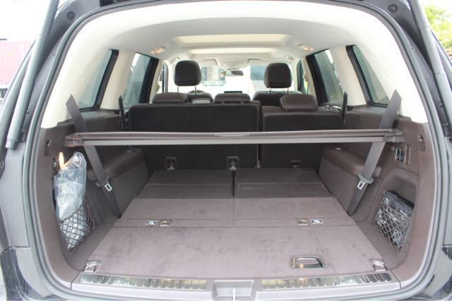 细节方面:打开车门,Mercedes Benz迎宾灯闪着莹莹的蓝光,在不锈钢护板的映衬下显得格外的耀眼夺目,另外可见17款奔驰GLS450装备的是纯美通透的Harman音响,声色更加细腻柔和。古色古香的胡桃木内饰,质感精细的材料和构思巧妙的设计恰如其分的融合在一起,四向皮质多功能方向盘、14段式可调节加热前座椅并带有记忆加热功能、6/4式可分离第二排座椅。