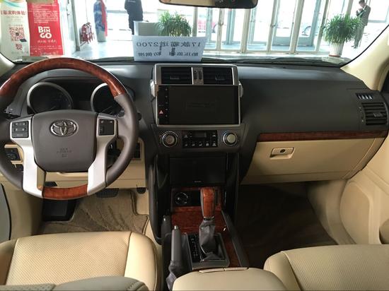 17款丰田霸道2700中东车厢内以柔和颜色作主调,充裕的车厢空间,带来非凡舒适享受。仪表盘至是单纯的双炮筒造型,没有多余的点缀,中间的液晶显示屏简单易懂。内部空间的舒适 性展现着普拉多 (配置|询价)除了硬汉之外的另一个形象,方向盘造型新颖,较为粗壮,上面布置了音响、电话等 控制键,操控起来手感出众。购车咨询热线:15902226165 王总(同微信)