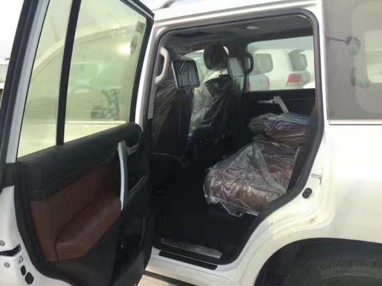 17款丰田兰德酷路泽5700中东VXR后排座椅配置:出去旅游时间较长,此车兰德酷路泽5700,高级原厂绒布座椅,7座手续第三排可以折叠放两侧,越野玩沙子的时候轮胎气过高或过低,此车有车载气泵功能,就算砸轮胎了您也不用担心本车携带换轮胎工具。有这些功能越野您还担心不安全吗。