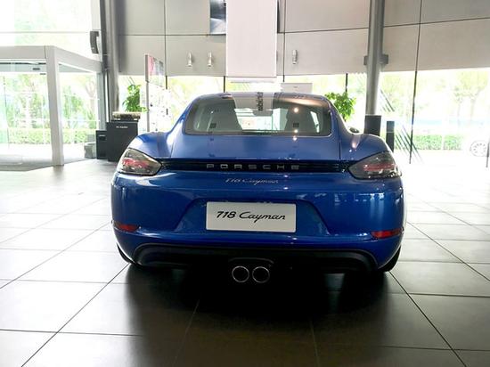 保时捷718Cayman不同于911的后置发动机,而采用了中置发动机,使得它具有前后双行李箱设计,令这款双门跑车最多可提供410L的储物空间。其中,车尾的行李箱容量为260L,配合掀背式尾厢门设计,可提供最高1.95米的净空高度。当车速超过120Km/h,车尾的扰流板便会自动升起,升起高度可达8厘米,驾驶员也可以通过车内的按键手动控制其升起。