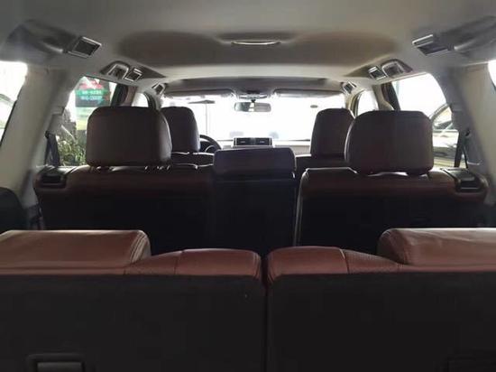 实车配置:后挂九气囊 7座 天窗 氙灯 大灯清洗 航踏 镀铬中网 17轮 高级咖啡棕真皮座椅 前排电动座椅 前座椅加热 桃木内饰 炫彩仪表盘 多功能方向盘 定速巡航 自动空调 冰箱 前后大包围 行李架