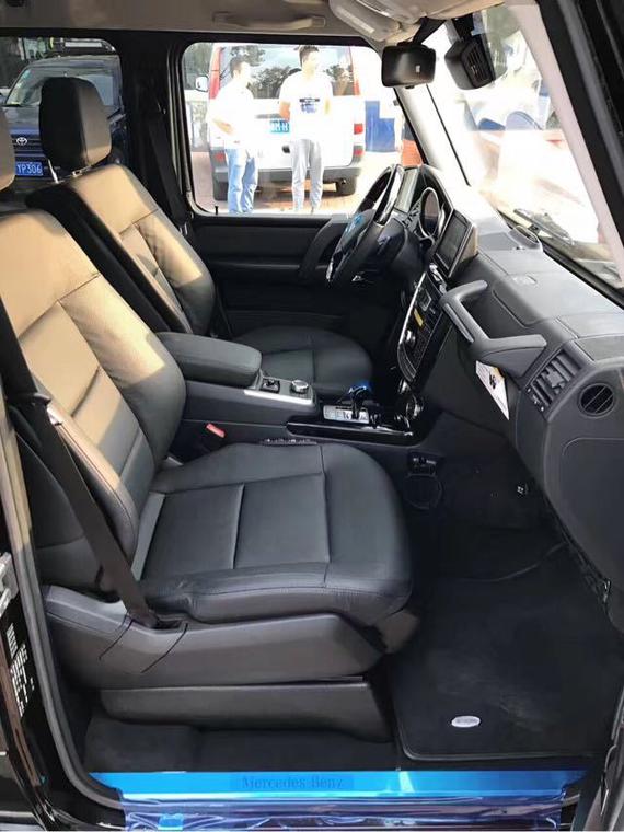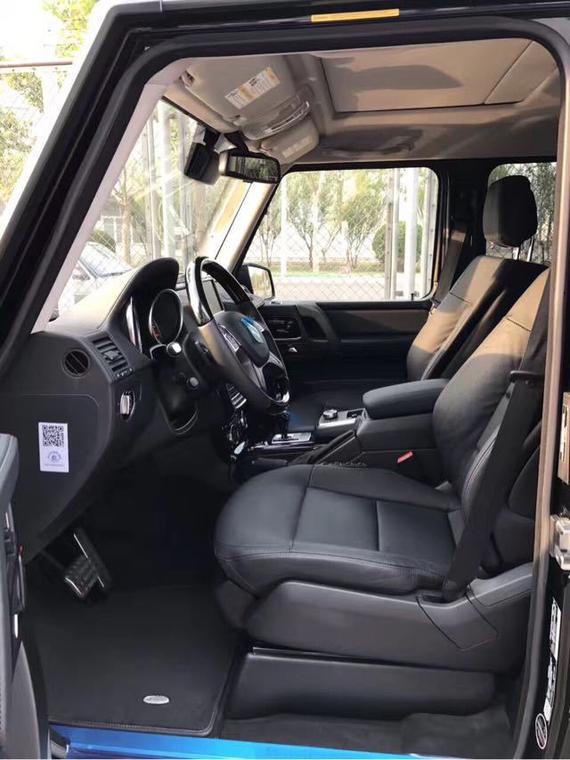 17款奔驰g500墨版新式仪表盘和最先进的系统驾驶室管理和数据系统。新的四辐方向盘也符合最新奔驰家族特征。配备后视摄像头,对于这样的大款头,倒车能够可视化,非常实用安全,内饰特选的小牛皮更符合了这款车的气质。