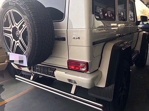 17款奔驰G500外观并不低调,劳伦士为它带来了类似AMG版本的运动包围。前保险杠被分成了三个方形的进气口。轮圈则装上了和AMG款式相近的大五星款式,并采用黑色设计,加上整个黑色的车身,流露出霸气的气质,这套轮圈尺寸达到了22英寸,采用轻质合金打造,配上295/35 R 22的轮胎。